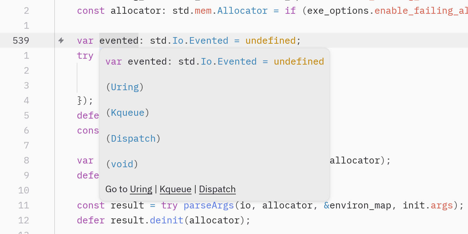 Hover popup on a variable of type std.Io.Evented.